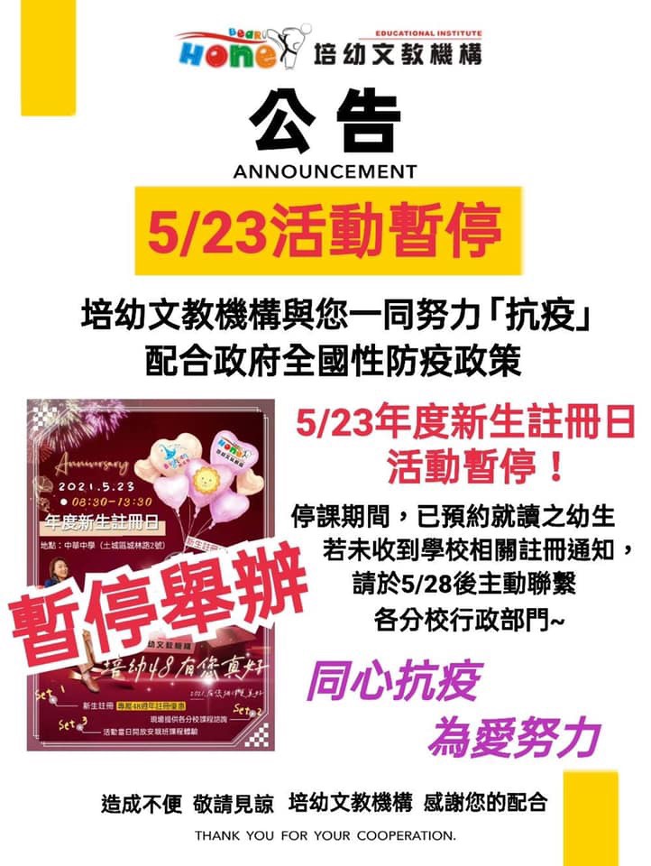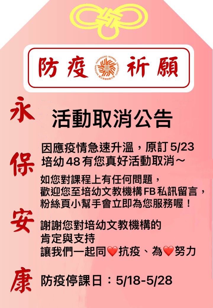 5/23培幼48有您真好活動取消公告~