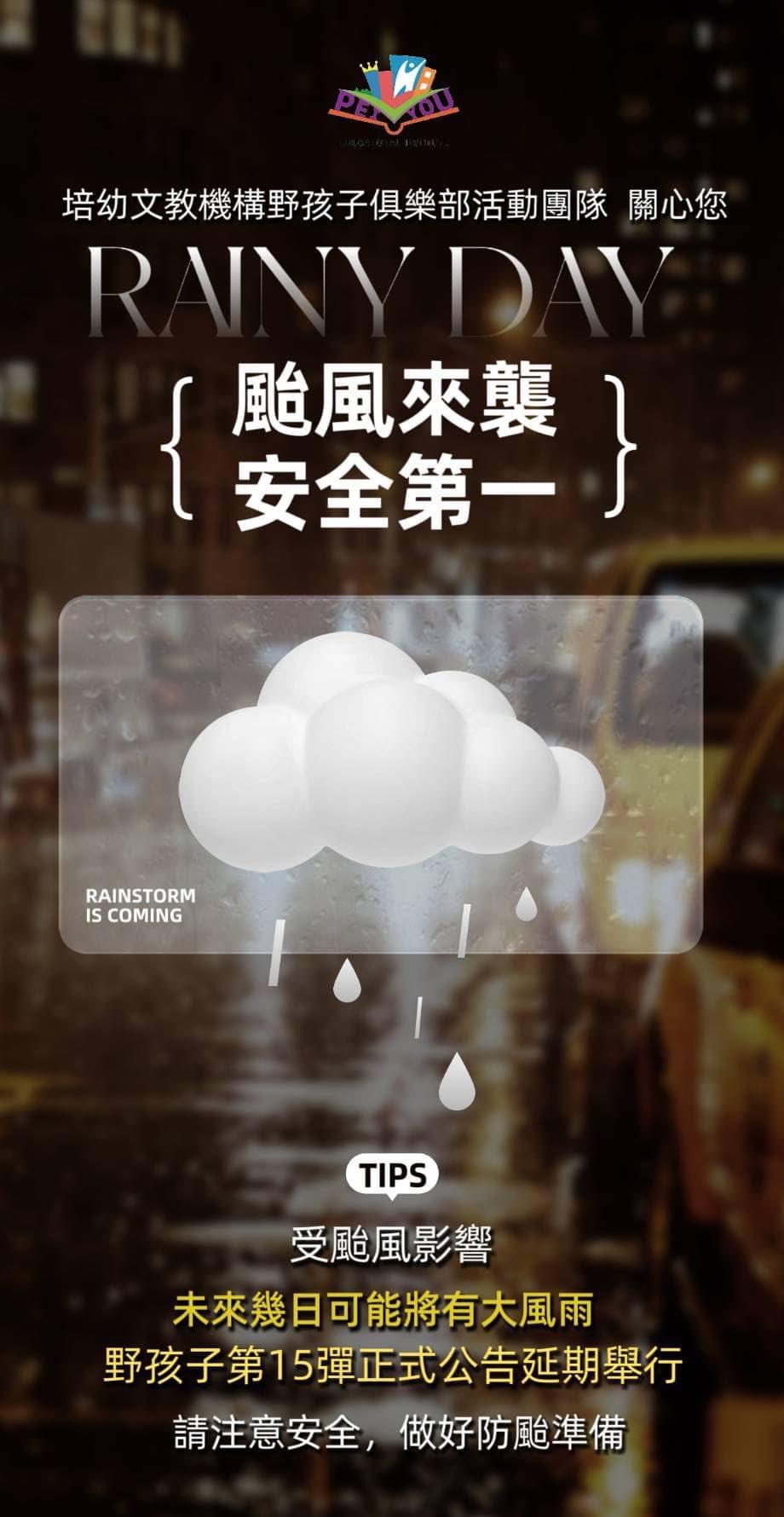 親愛的野家長、野孩子們:因應中颱「康芮」颱風即將來襲,預計週四、週五影響台灣,為了孩子們的安全,野孩子第15彈「夜宿海生館」,確定延期,會在告知順延至何時舉辦❤️颱風來襲、請注意安全❤️#培幼文教機構野孩子俱樂部特此公告#等天氣晴朗時,我們野放海生館❤️