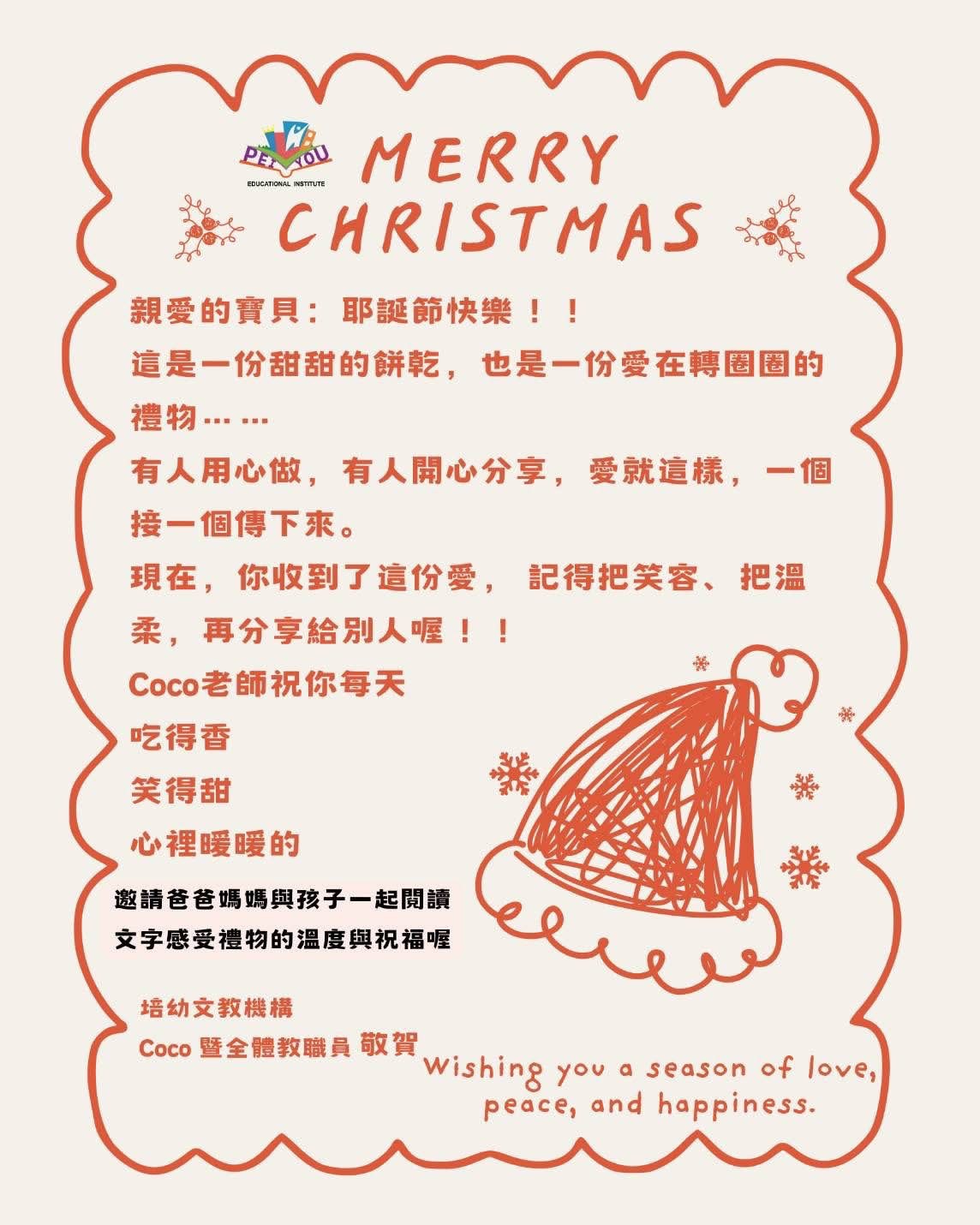 這個聖誕節,學校特別準備了一份小小的餅乾禮物,送給孩子們。這不只是一份甜點,更是一份「愛的分享」。